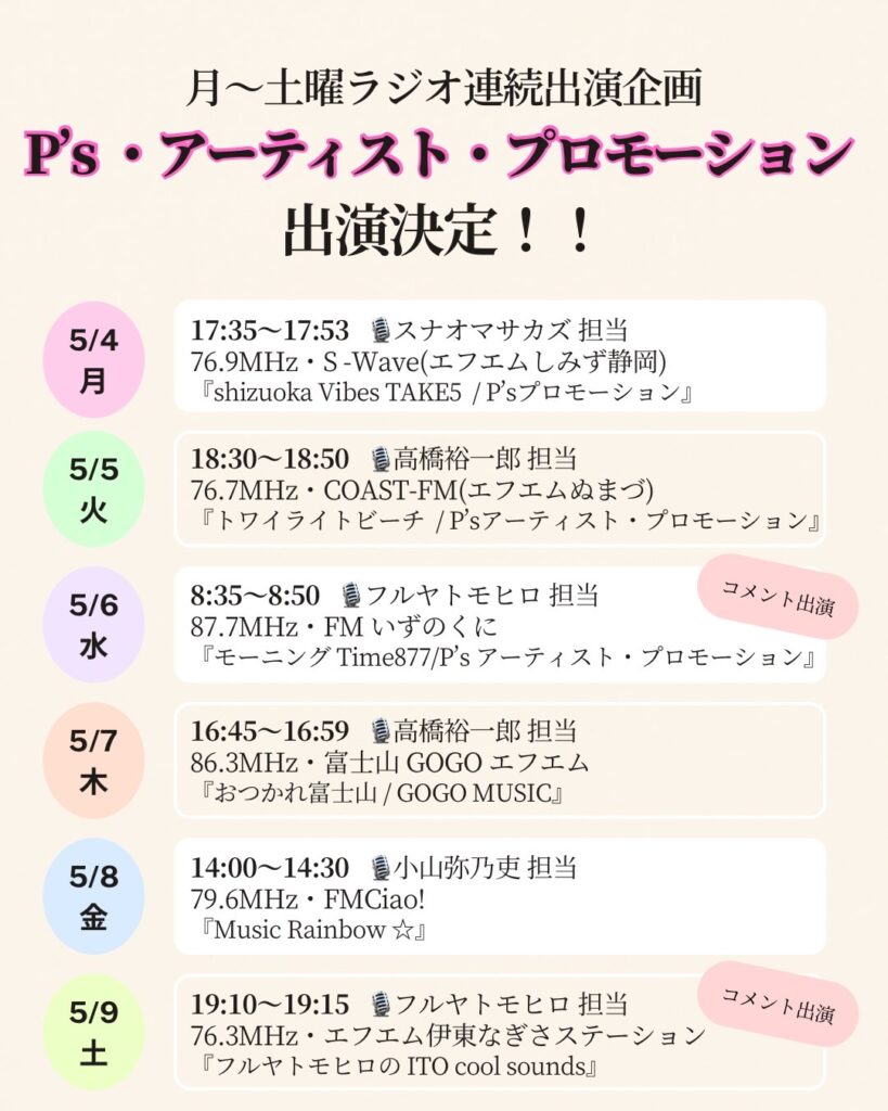 5/4(月)〜5/9(土)「P’s・アーティスト・プロモーション」〜since2000〜出演決定!!